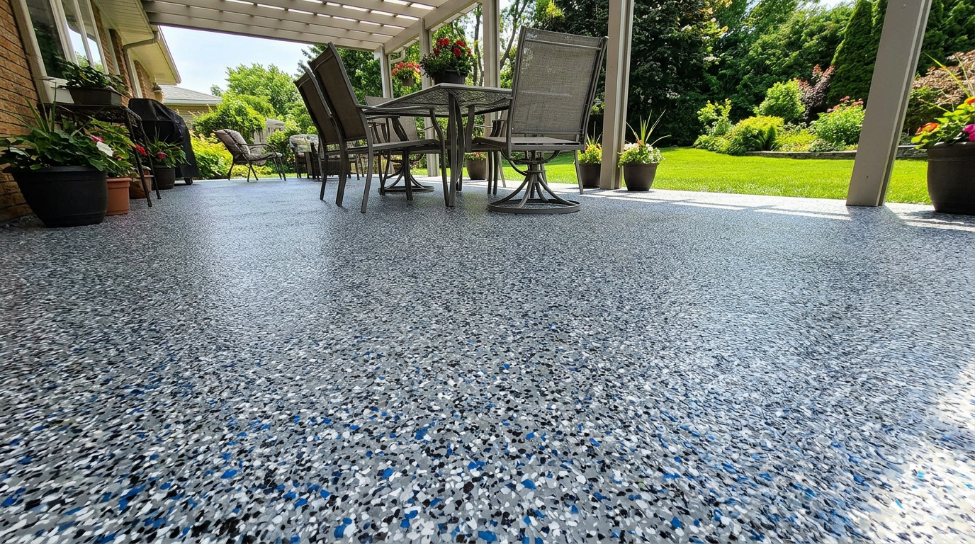 Upgrading your concrete patio with a polyurea polyaspartic coating does more than just refresh its appearance. It provides a high-strength protective shield that ensures lasting durability and a beautiful, high-end finish.